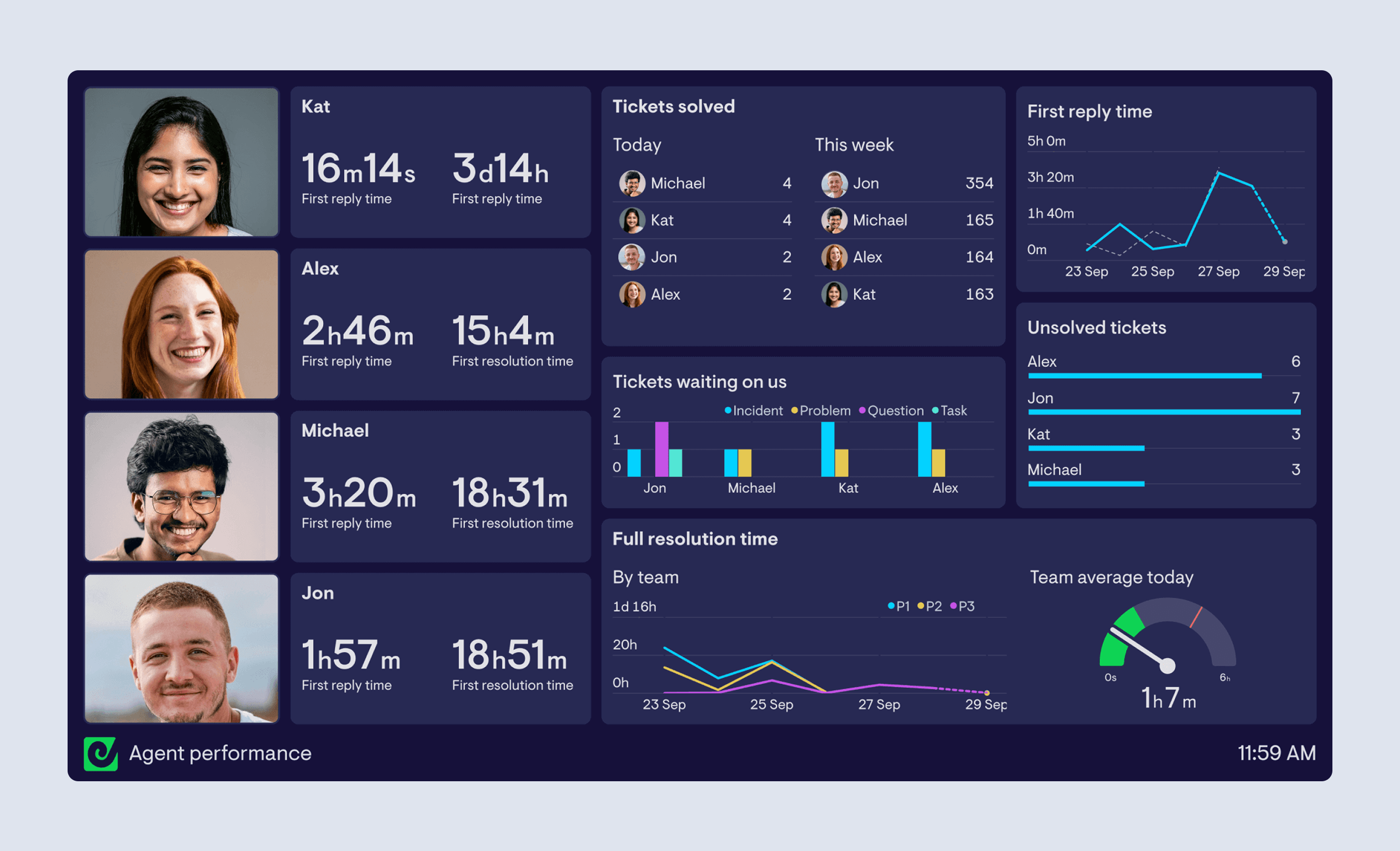 Gamification in support teams means using leaderboards, targets, or rewards to influence behaviour - often based on metrics like tickets solved, SLA risk, first reply time, or CSAT. It works best when the underlying metrics update within minutes and are visible to the whole team via a live dashboard or wallboard.