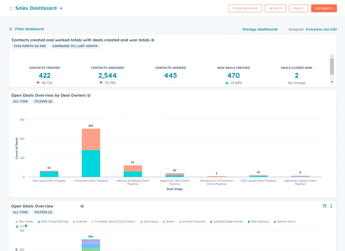 Before diving into reporting, the first step is setting up a custom sales pipeline dashboard in HubSpot. Think of this dashboard as your central hub for all things sales-related. It gives you real-time insights into how deals are progressing and helps you track key metrics like deal velocity and win rates.