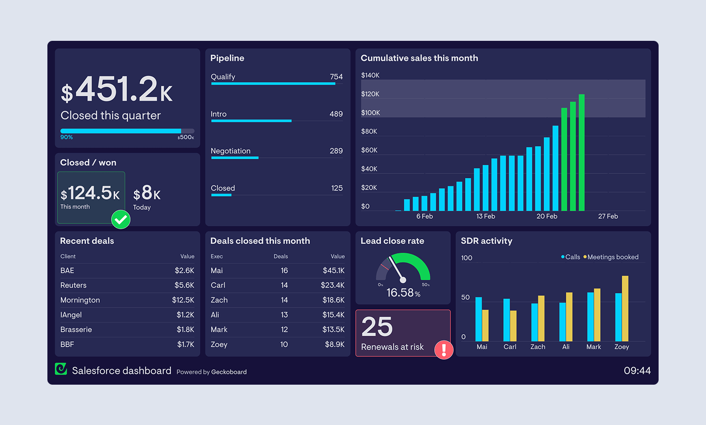 Turn Salesforce reports into auto-refreshing dashboards with Geckoboard