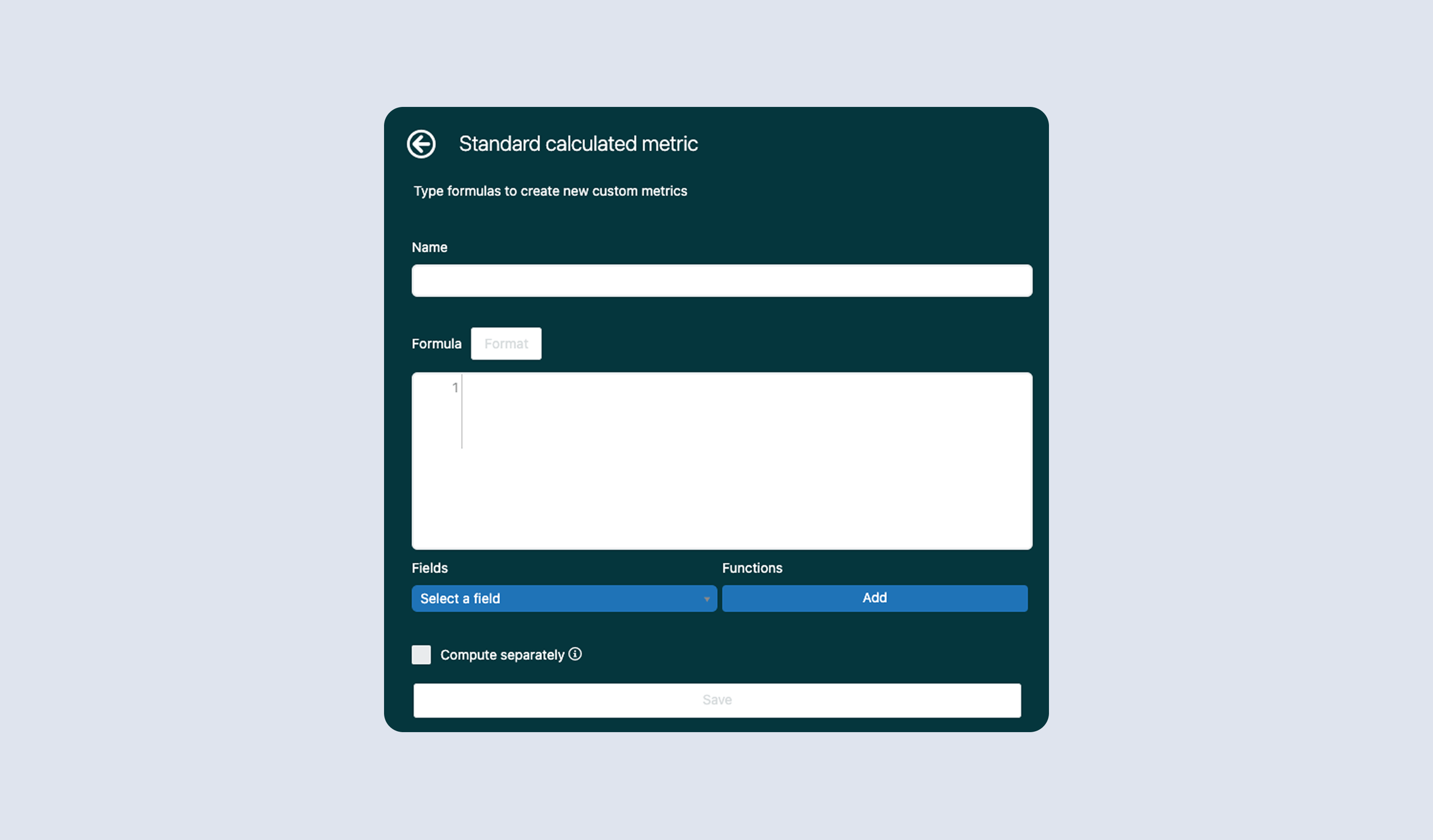 At a high level, you choose the base metrics and attributes you want to work with, apply a formula, and save the result so it can be reused across reports and dashboards.