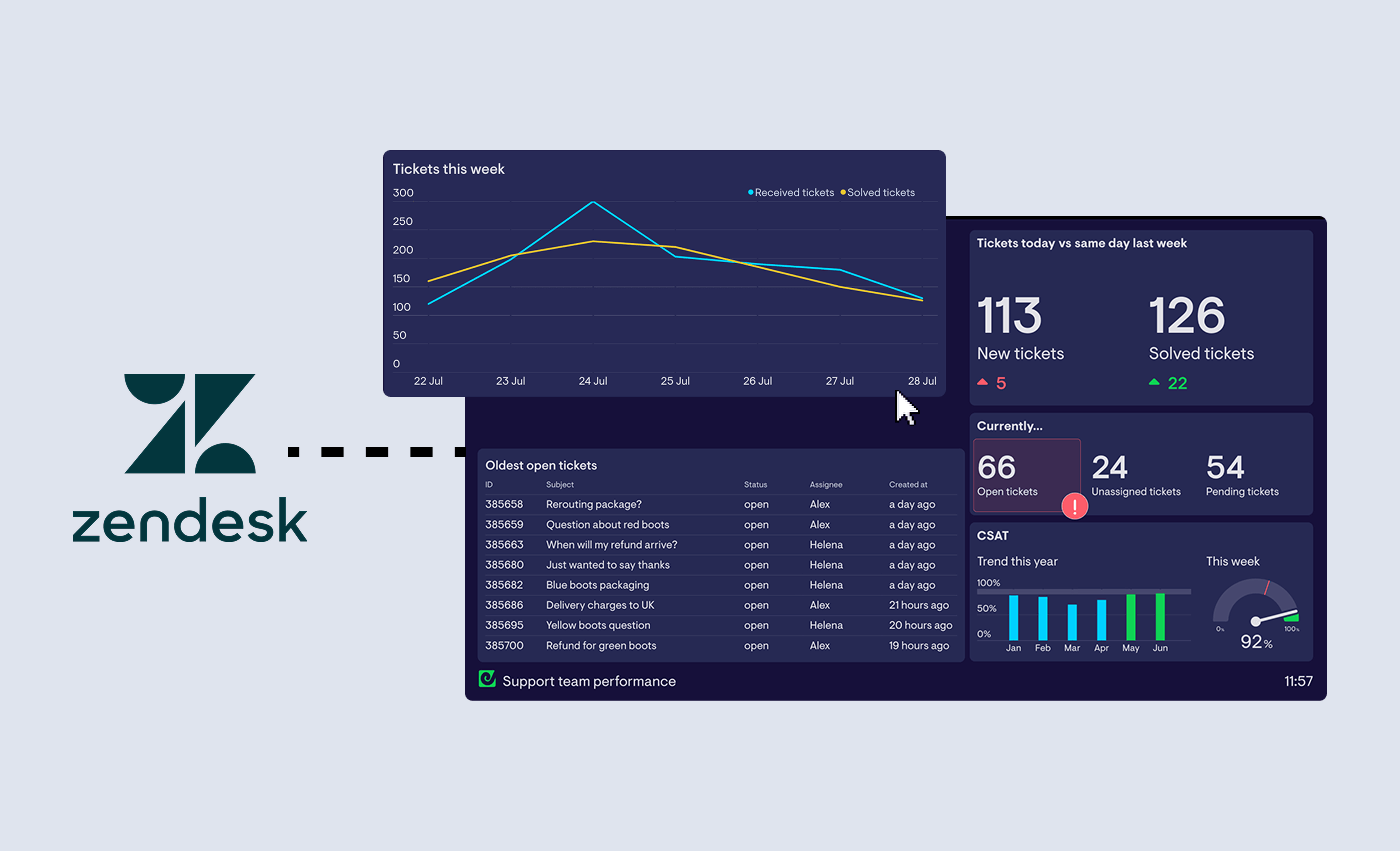 - Put a small set of Zendesk KPIs on a shared dashboard
