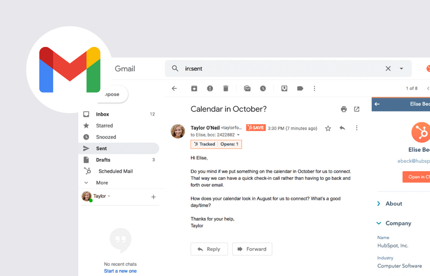 Why sales teams need it: Most sales interactions happen over email. By integrating Gmail or Outlook with HubSpot, sales reps can track emails, schedule meetings, and log communication directly from their inbox. This simplifies email outreach and makes sure every interaction is logged in HubSpot.