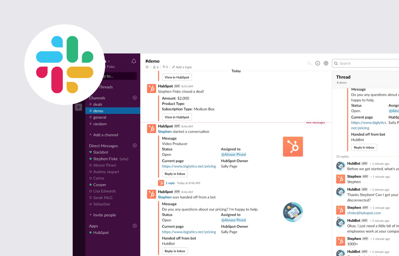 Why sales teams need it: Slack keeps sales teams connected. By integrating with HubSpot, Slack sends real-time notifications about deal updates, new leads, and other critical activities directly to the team’s communication channels. This means that sales reps stay informed and can collaborate more effectively.