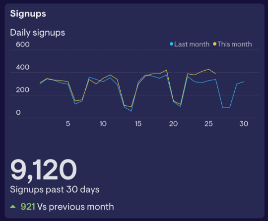 In the example above, the comparison line and the green upward arrow make it clear that sign-ups are growing.