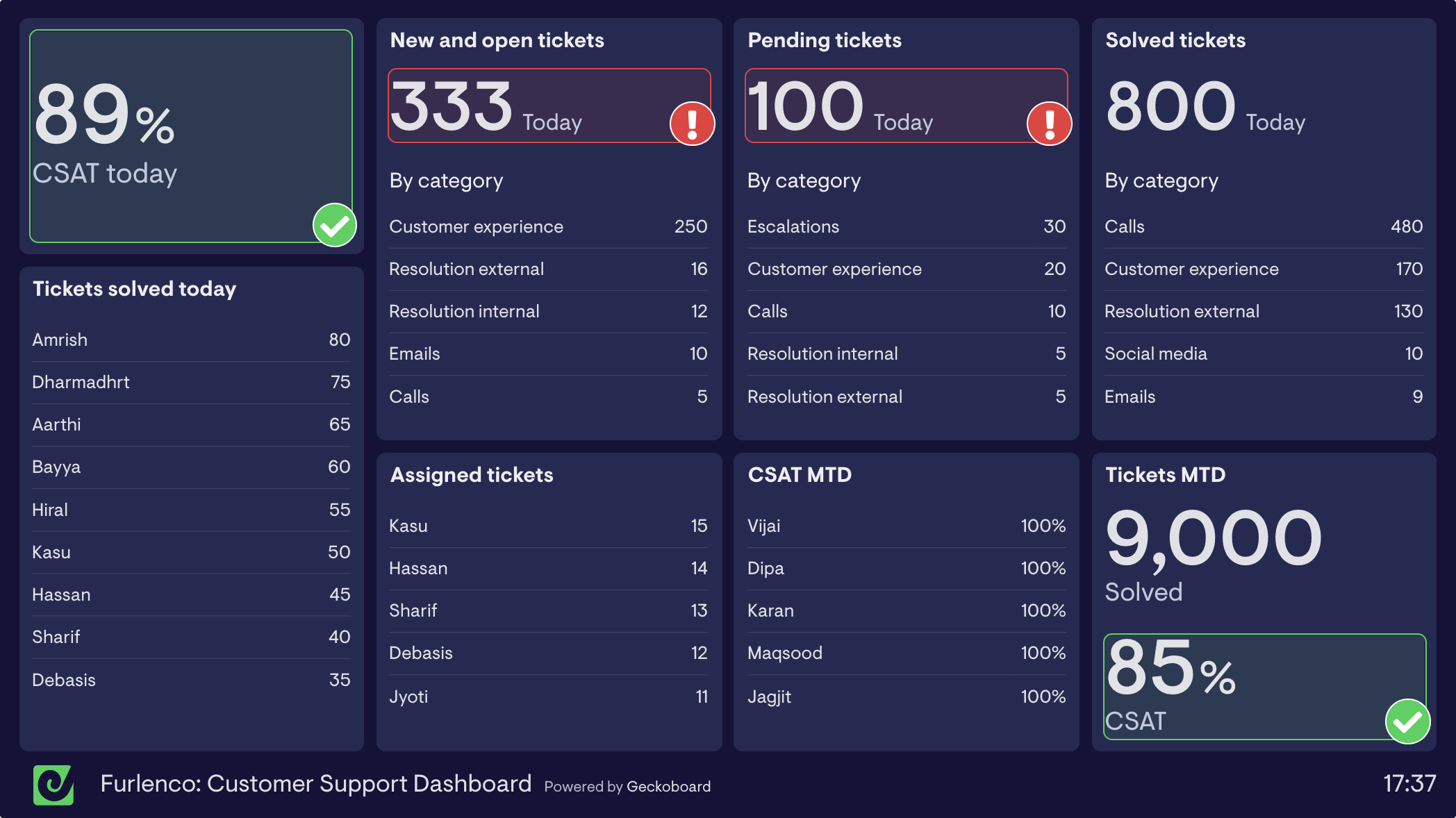 I’ve been at Furlenco for over two years now and introducing Geckoboard was one of the first things I did. The Customer Support team now has around 40 members, and the whole team relies on Geckoboard to keep us on track. We’re very happy customers!
