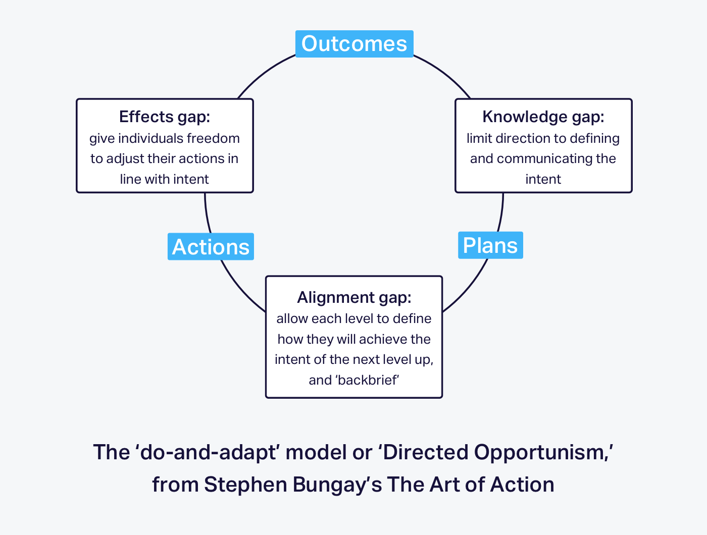 Described by Stephen Bungay in The Art of Action, Directed Opportunism is basically a reboot of Management By Objectives. But it introduces some extra tools that will help you stop micromanaging.
