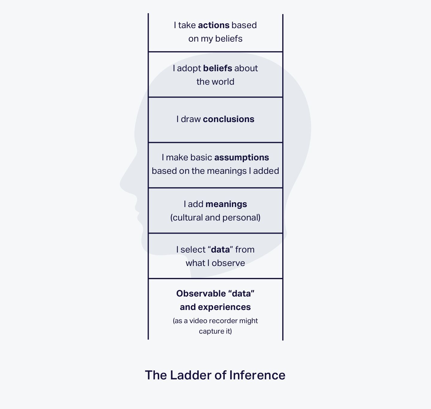 Another way to promote Psychological Safety is to encourage your team to have healthy debates with you or their manager. But, to make these debates productive, you and your team can use the The Ladder of Inference
