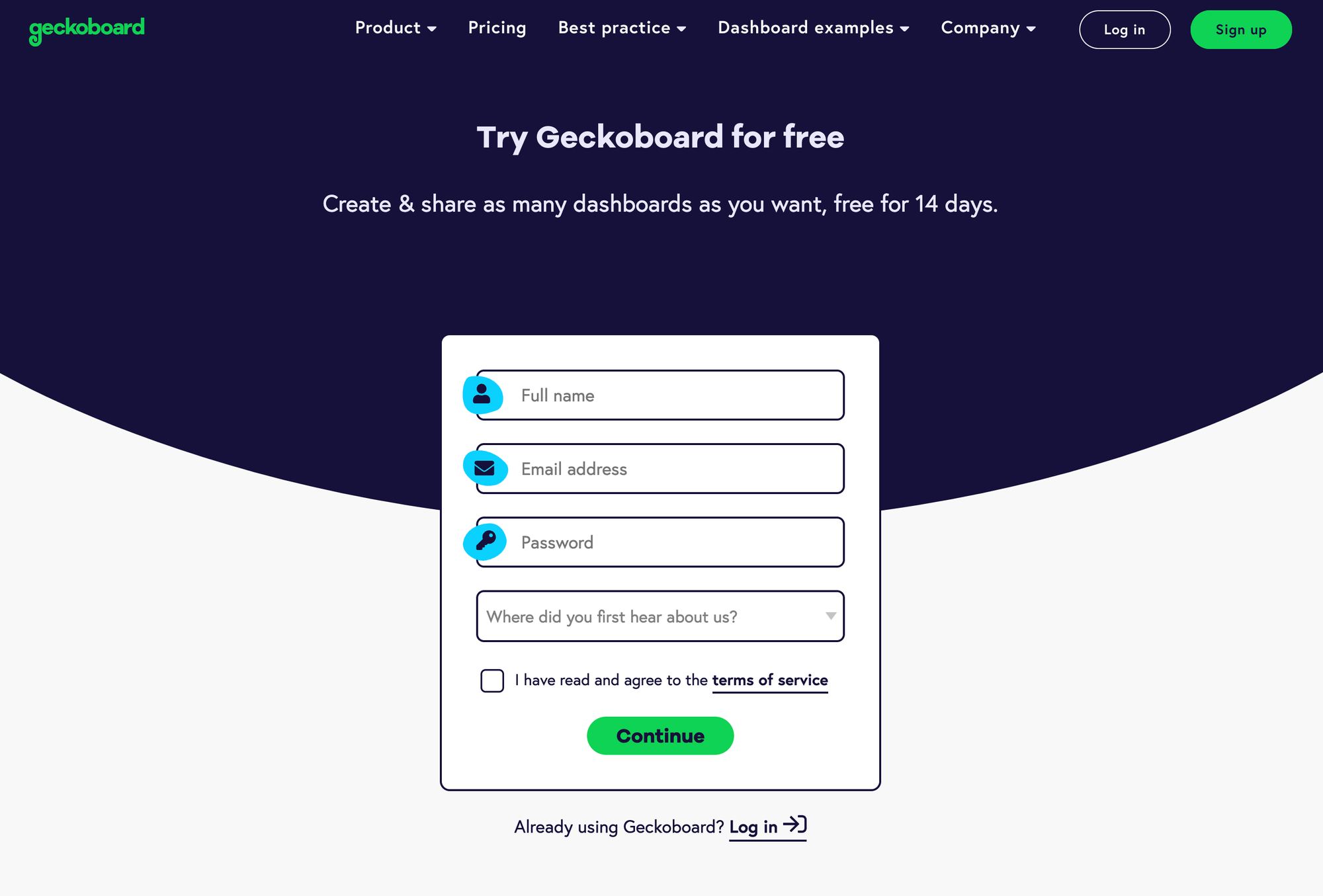Step 1: Signup to Geckoboard