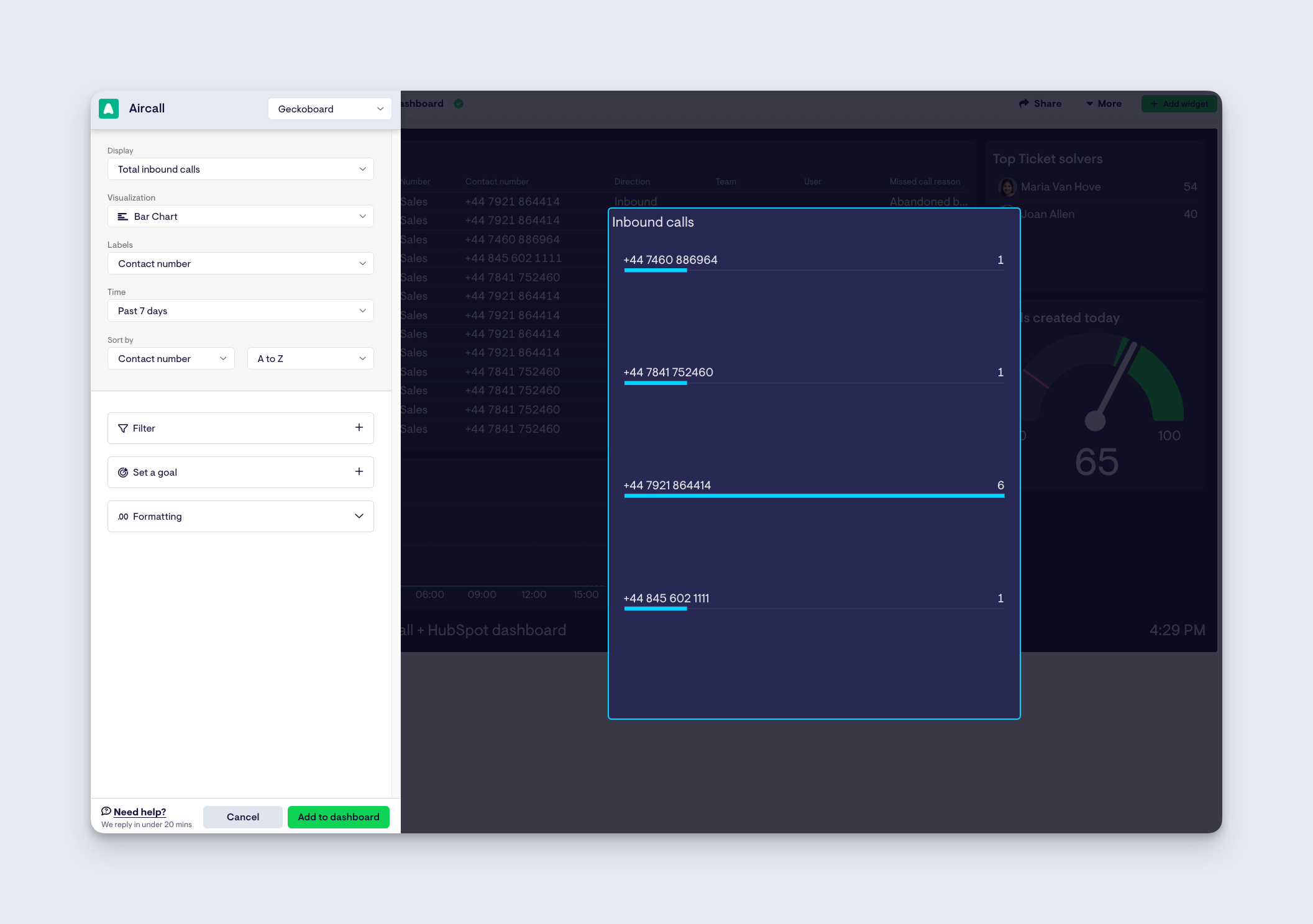 Visualize Aircall and Salesforce metrics with Geckoboard