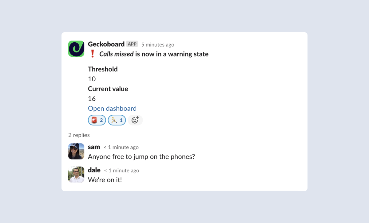 Automated Slack updates are great at sparking conversations and action: