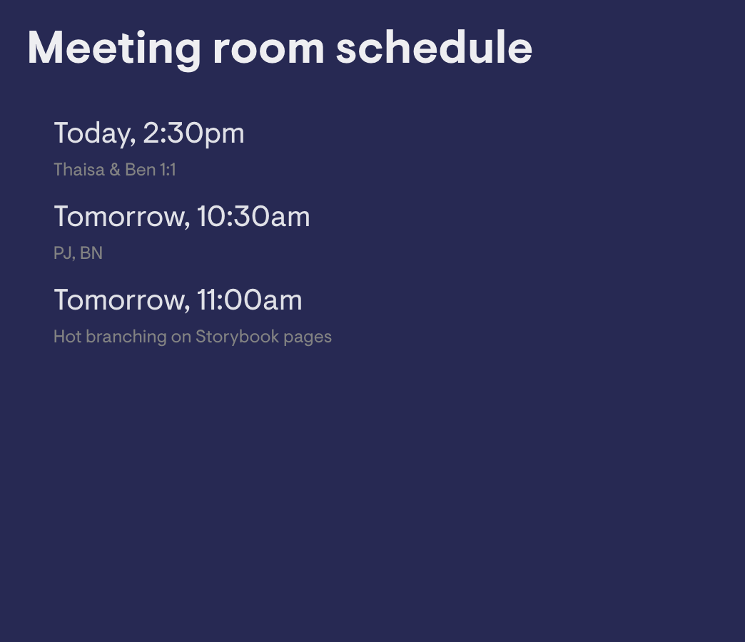 Securely connect your Google Calendar to Geckoboard, and display upcoming events or meetings on a TV dashboard so your team is in the know.